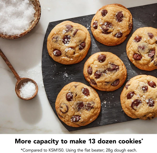 • Mixes 13 dozen cookies per batch*, kneads over 8.5 lbs of bread, or mashes over 7.5 lbs of potatoes (*Using the flat beater; 28g dough each)