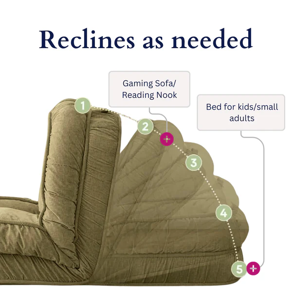 Convertible Functionality: Adjusts from an inviting chair to a full single bed, providing versatility for lounging, reading, or sleeping.