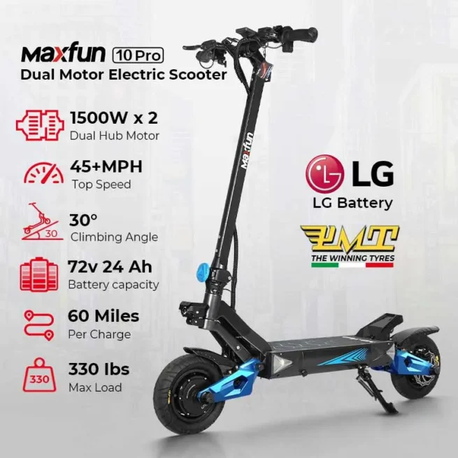 The dual 1500W wheel-set motors on the wheels can provide a peak power output of 4000W. which can provide stronger acceleration and climbing ability whether in urban or off-road landscapes.