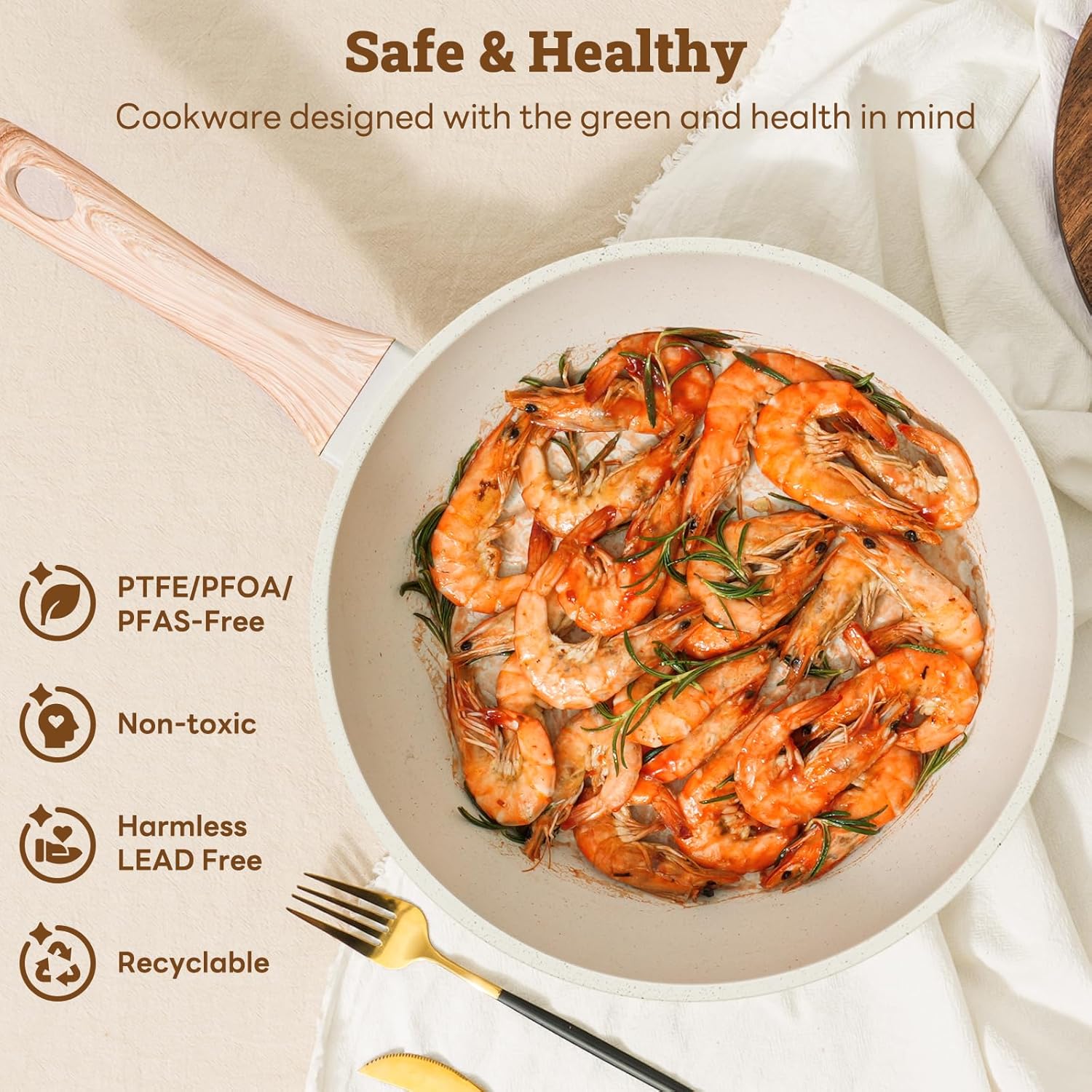 17 Pcs Pots and Pans Set Non stick .Cookware Sets White Granite Induction Cookware. Non-toxic Healthy Non Stick Kitchen Cooking Set with Frying Pans Set. Saucepans (PFAS. PFOA. PFOS Free) White