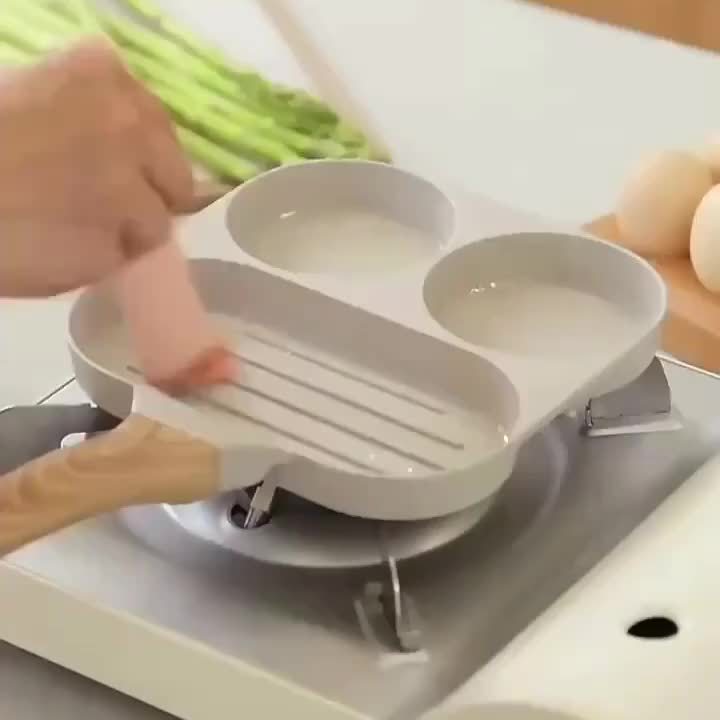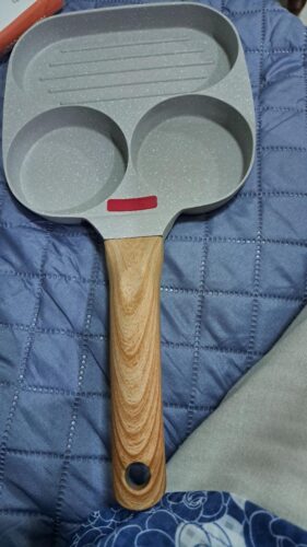 1pc Household Maifanshi 4-Compartment Non-Stick Aluminum Frying Pan with Wooden Handle - Multi-Use Breakfast Eggs, Hamburgers, Steaks & Shrimp Cookware, Even Heat Distribution, Easy Clean, Multicompartment Cooker | Ergonomic Kitchenware | Easyclean Surface photo review