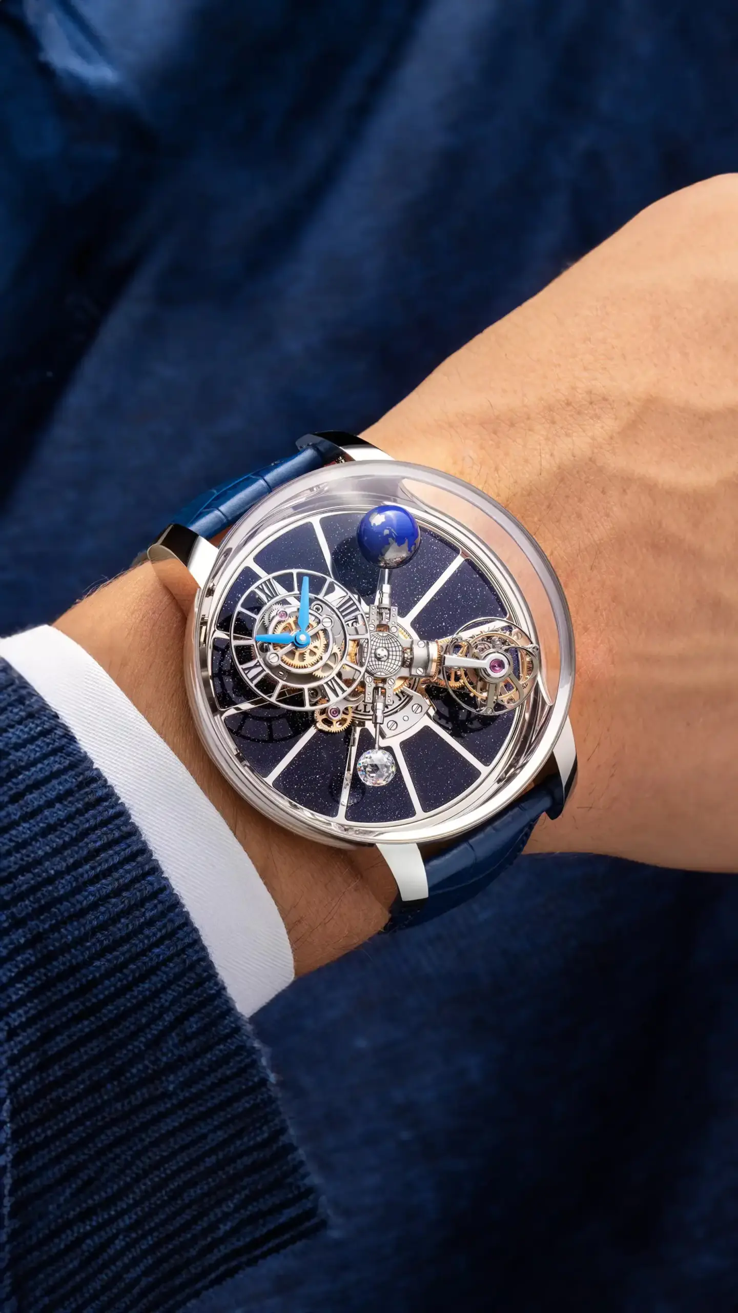 Gravitational Triple Axis Tourbillon, 1st axis rotating in 60 Seconds, 2nd axis in 2.5 Minutes and 3rd Central Axis in 10 Minutes