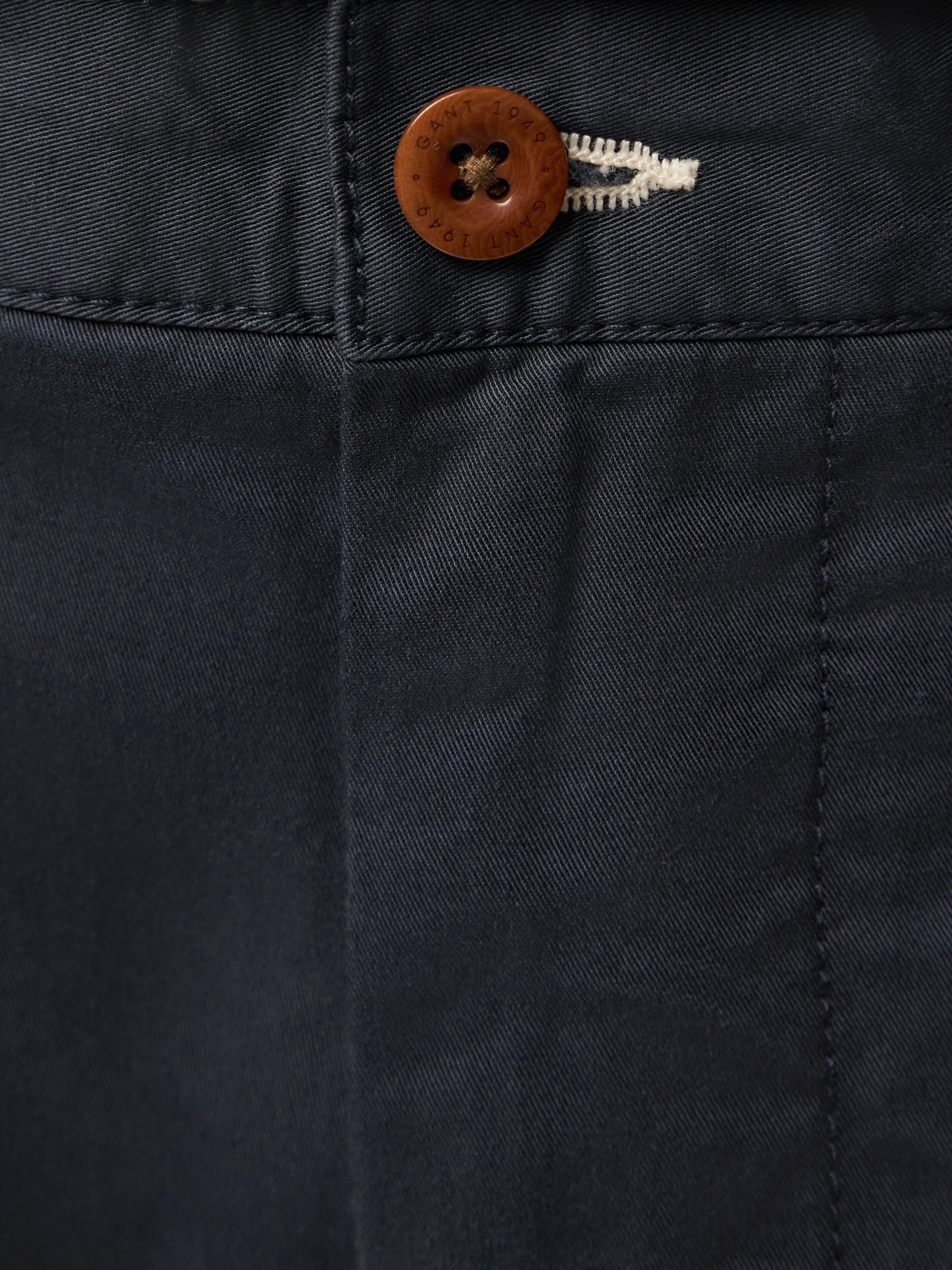 Crafted from organic cotton twill with a hint of stretch. these chinos have a regular fit down through the leg. Detailed with buttoned back pockets and a GANT logo on the right back pocket. pair them with anything from a relaxed-fitting t-shirt to a more dressed-up button-down shirt.