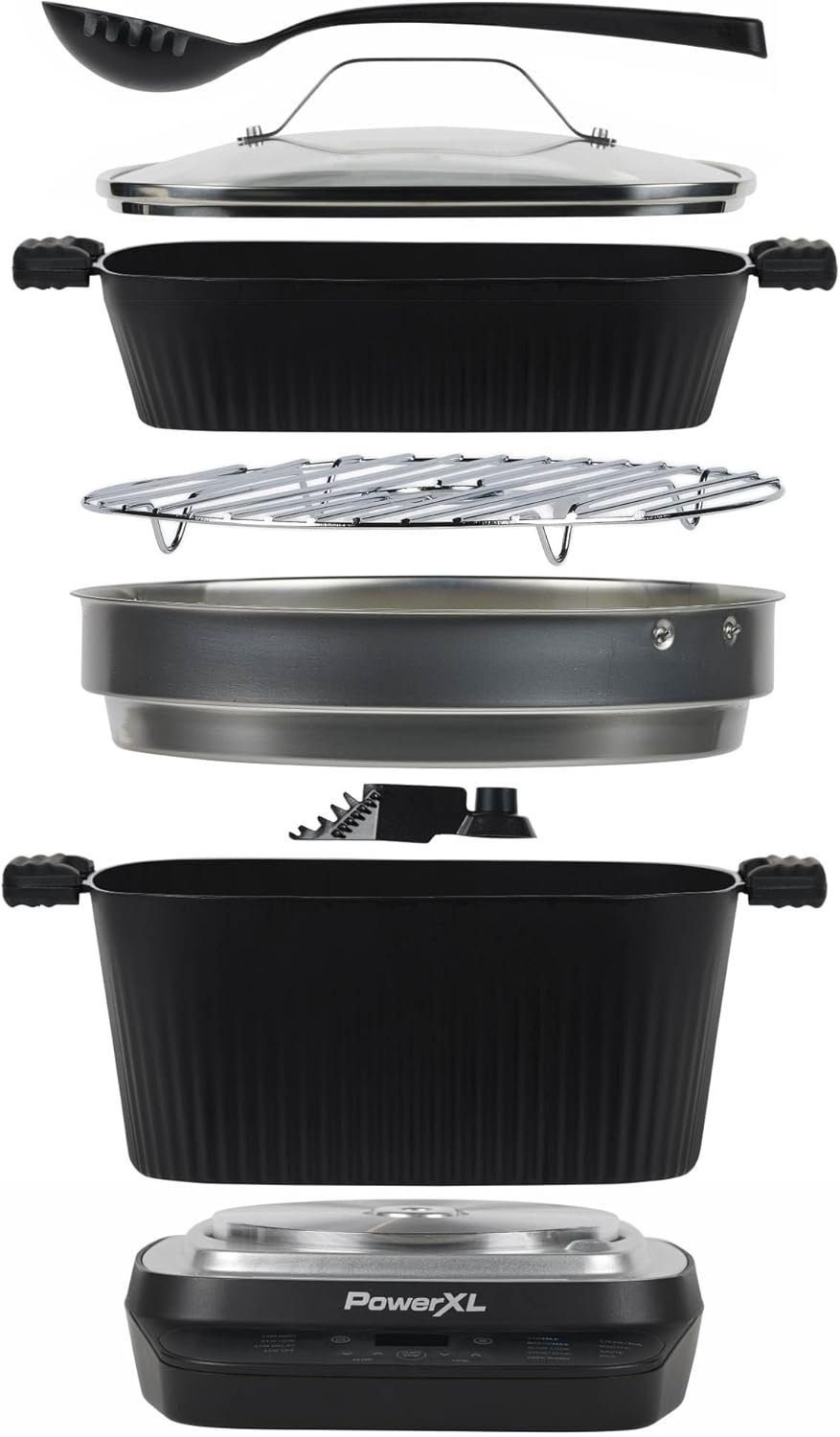 • 7.5QT FAMILY-SIZE CAPACITY & SKILLET ACCESSORY – Fits two whole chickens** or 6LBS of pork in one compact. space-saving design; skillet. wire rack. glass lid. ladle. non-stick cooking pot and paddle. steamer and rice basket. and recipe book included